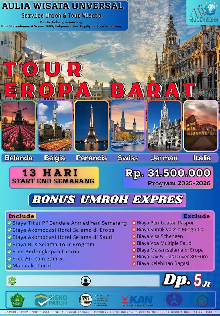 Destinasi Negara: Belanda - Belgia - Perancis - Swiss - Jerman - Italia